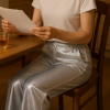 フレアカットのシルエットが脚のラインをすっきりと見せてくれて、素材は柔らかく、ツルツルと滑らかな手触り。
