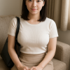 「暑くなりましたね」彼女の視線が、ふとカーテン越しの日差しに向く。その瞬間、カットソーの胸元がわずかに緩み、白いレースのブラの縁が覗いた。