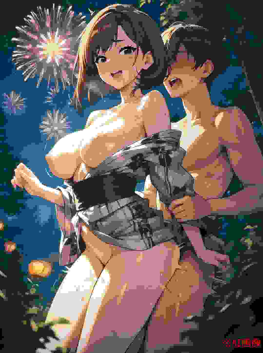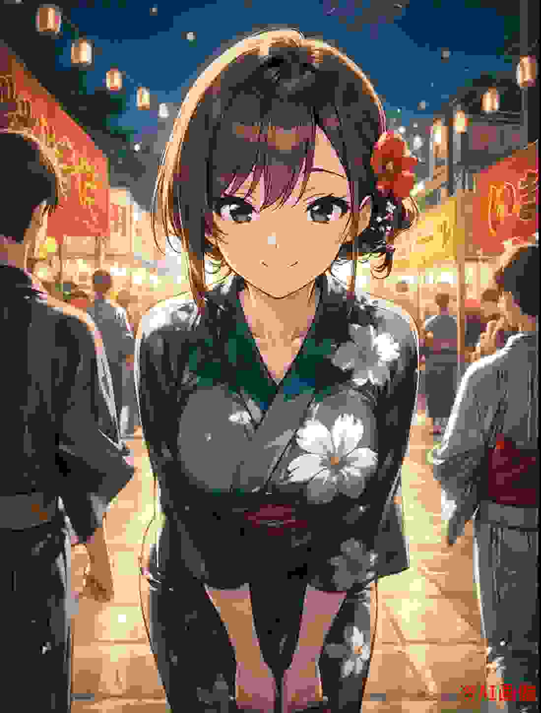 かなでの声は、夜の闇に溶け込むように穏やかでした。ゆまは彼の浴衣の袖をそっと掴み、その言葉に耳を傾けます。